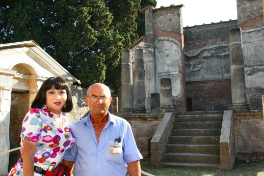 ナポリから1時間ほどで行くことができるポンペイの遺跡。その遺跡をまわっていたときのことです。ポンペイ遺跡係員のネームプレートをつけた男性が、私に話しかけてきました。もっとも、「お茶しませんか」みたいな声かけではありません。私にずっとつきそい、遺跡をあちらこちらと連れて回って説明してくれるのです。もちろんイタリア語ではありません。外国人がイタリア語を知っているとはかぎりませんから。英語での説明です。この方も英語を母国語としているわけではなさそうで、流暢な英語ではありません。片言の英語といったらよいのでしょうか。だから逆に、私にもなんとなくわかりました。ただ、劇場を「シアター」と紹介するのではなく「テアトル」といわれたときには、初めはなんのことかわかりませんでした。写真のように、一緒にツーショットしたりして、30分は歩いたでしょうか。