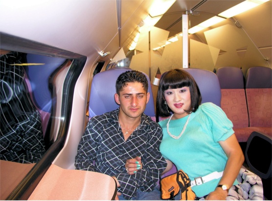 イラクといえば、イランやサウジアラビアに比べれば世俗的要素が大きいとはいえ、イスラム教の国。妻でもない女性がこんなに接近するなんて、国内では考えられないのだと思います。私、ちょっとイタズラ心を起こしてしまいました。電車内だから襲われることはないだろうと。だったら、ちょっと、彼のことを弄んでみようか(嫌な性格ですね)。ツーショットを撮ろうということになって、こんな接近をしてしまいました。見ず知らずの異性が(女性だと疑っていない様子)こんなに接触して、そして、胸元につけているクリスチャンディオールのオーデコロンは、きっと、彼の鼻腔をくすぐり、きっと頭の中は『触りたい』という意識でいっぱいになっていたと思います。でも、触ってきたら「ダメですよ」と彼の手を押し返す。そんなことをくり返していました。