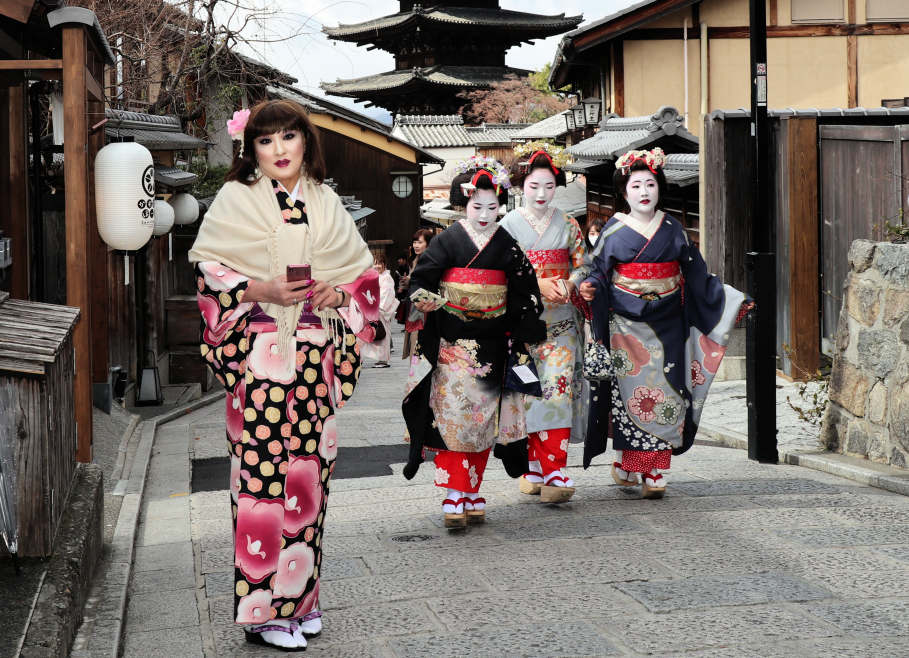 古都には,和服姿が一段と映えますね。