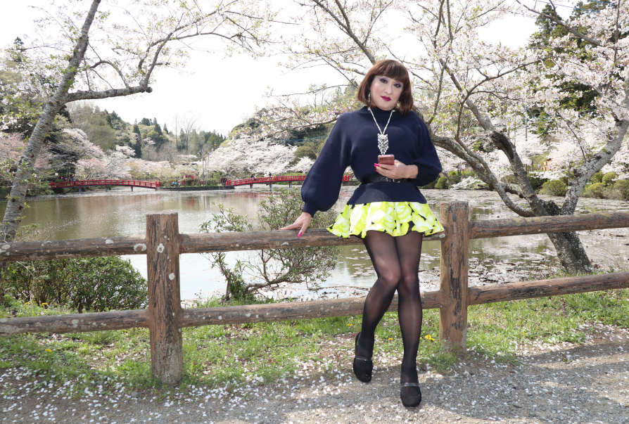今日は,桜を愛でる美女.留美子さんのポートレート。